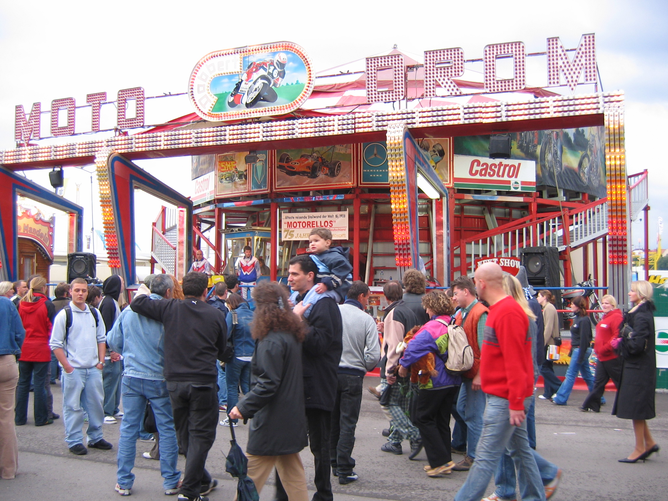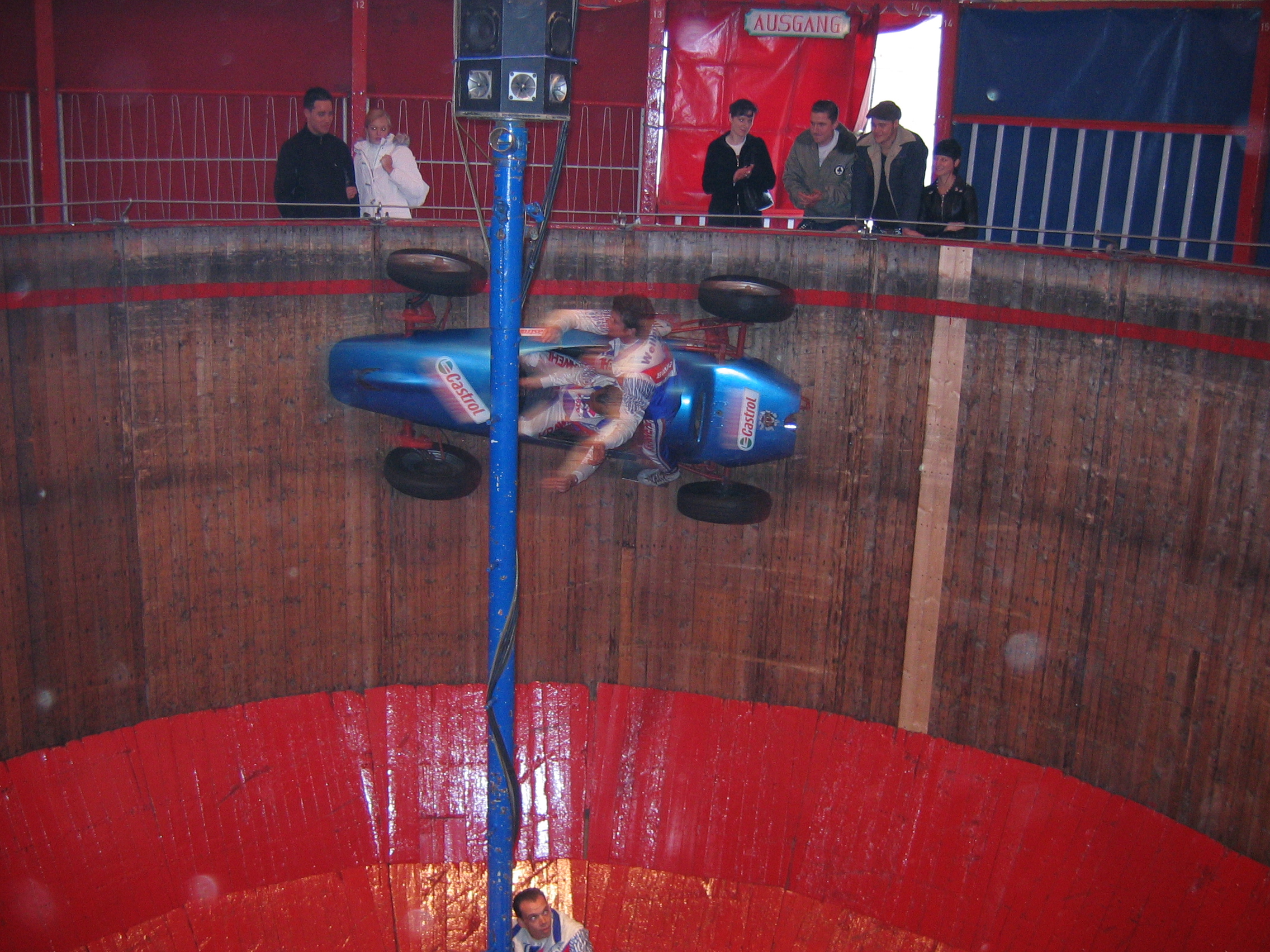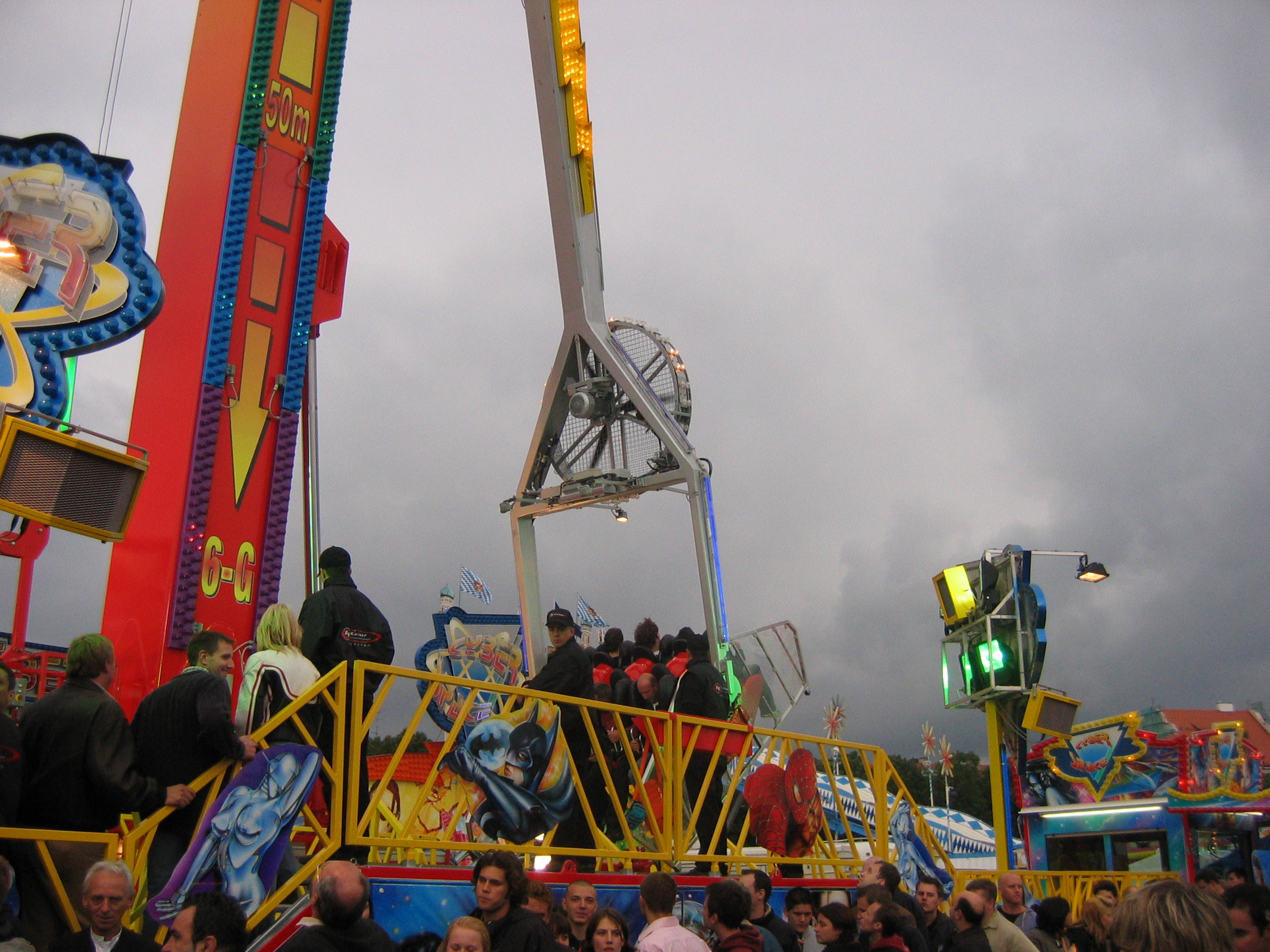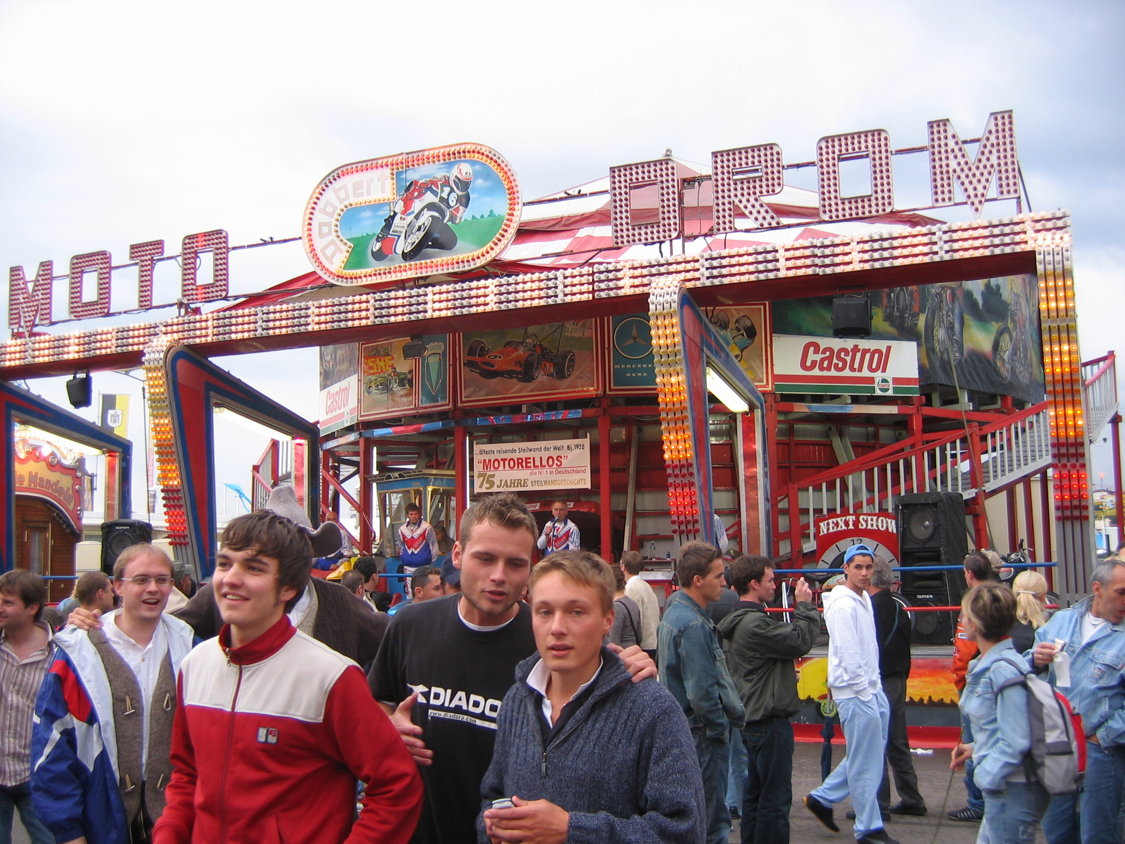 Waiting under the awning with the German lady selling stuffed animals. Seeing the two young men and woman dancing to the sounds of the "disco" ride. Thinking the guy danced good. Kind of like the commericial you see on TV of the guy dancing with the two woman in front of the bar. I think it is a German alcohol commercial.