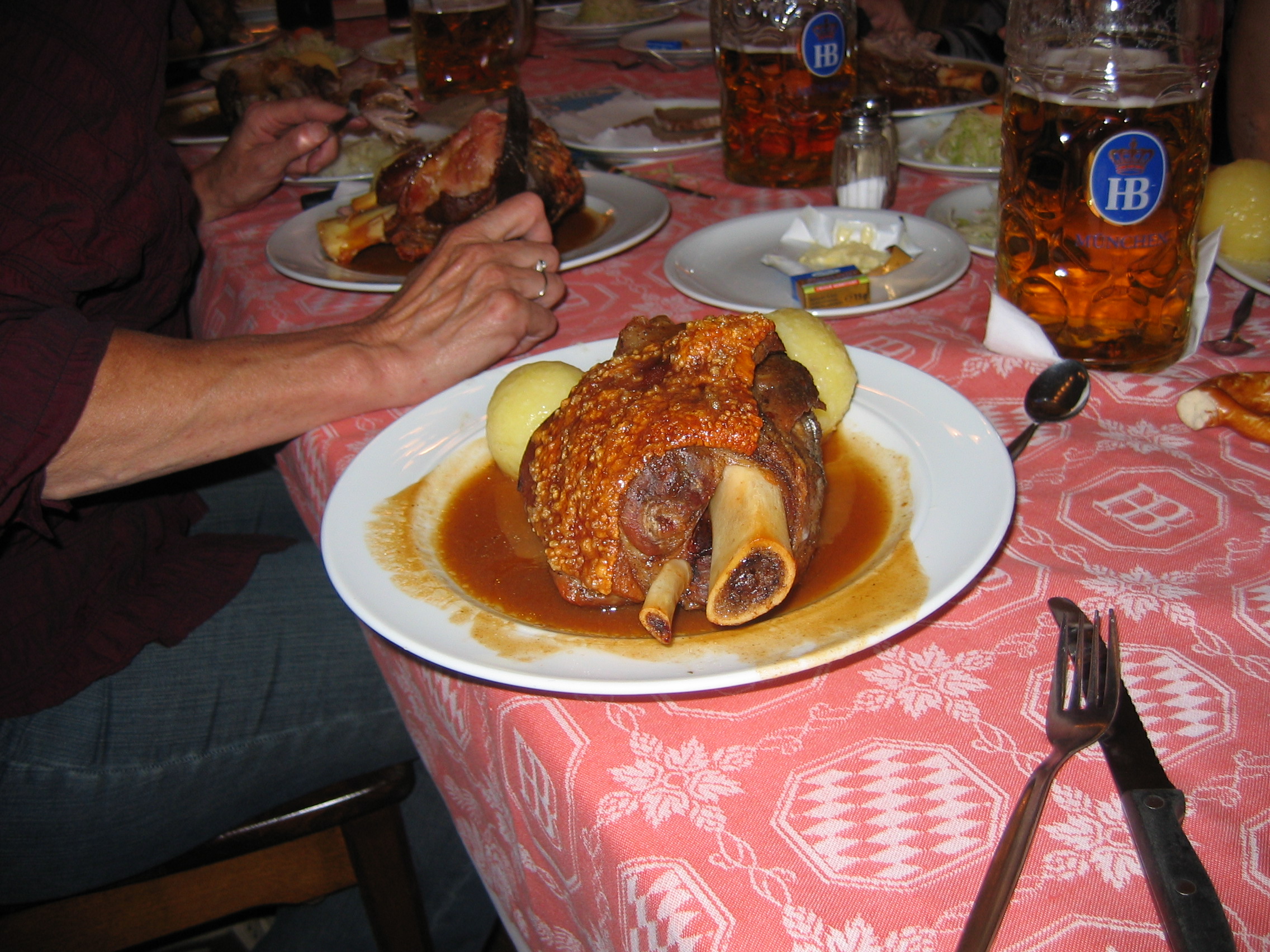 Eating in the roftbrauhaus. The kindness of the Austrians and the French who shared their food with me. Their is no nobler act of kindness.